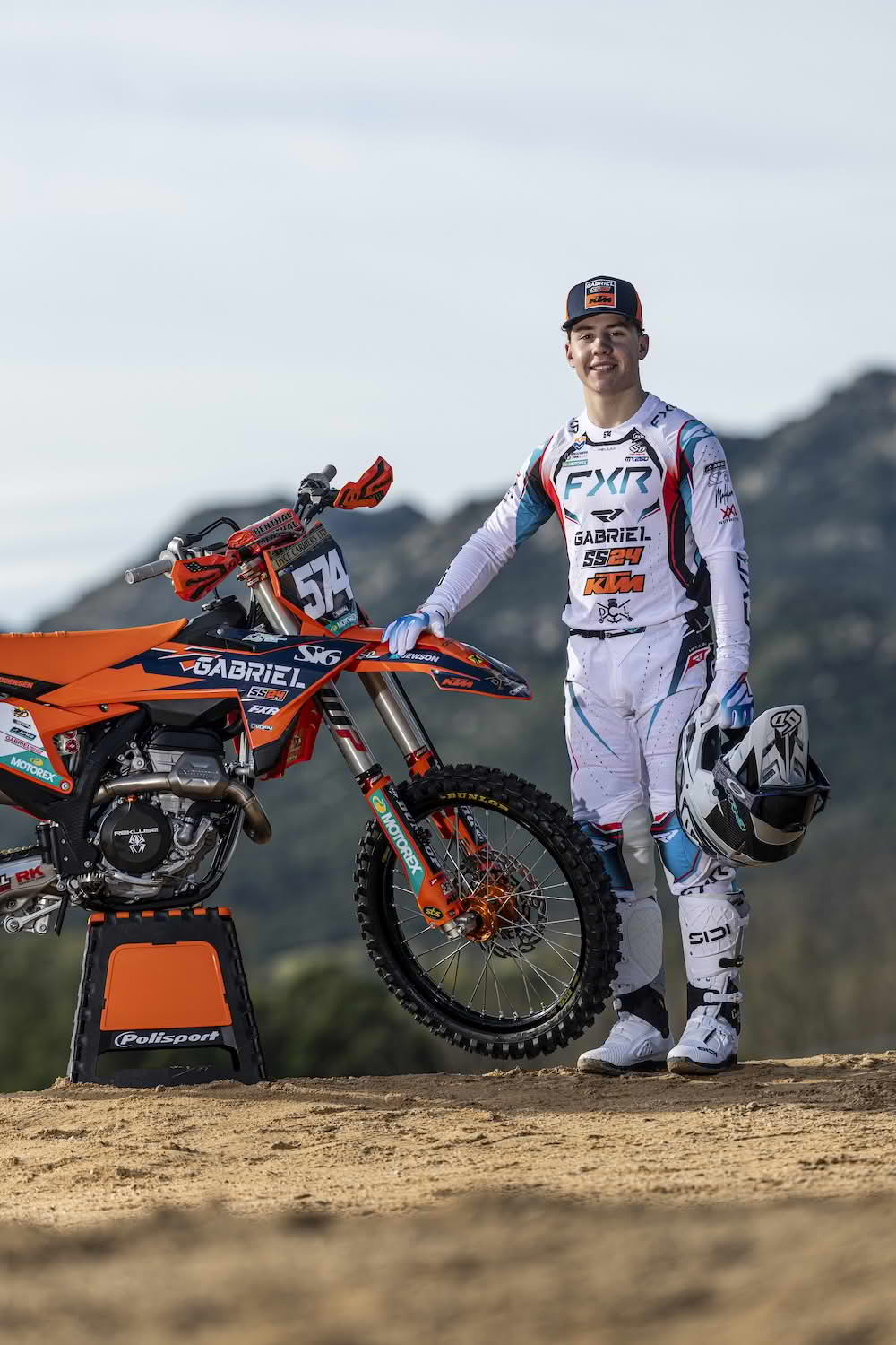 Deze jonge motorcrosser uit Swalmen mag nu al uitkomen in de 250 cc klasse voor het Gabriel SS24 KTM Factory Juniors Team. De nummer 574 liet al in zijn eerste rondes zien dat de 250 cc machine hem past als een jas.